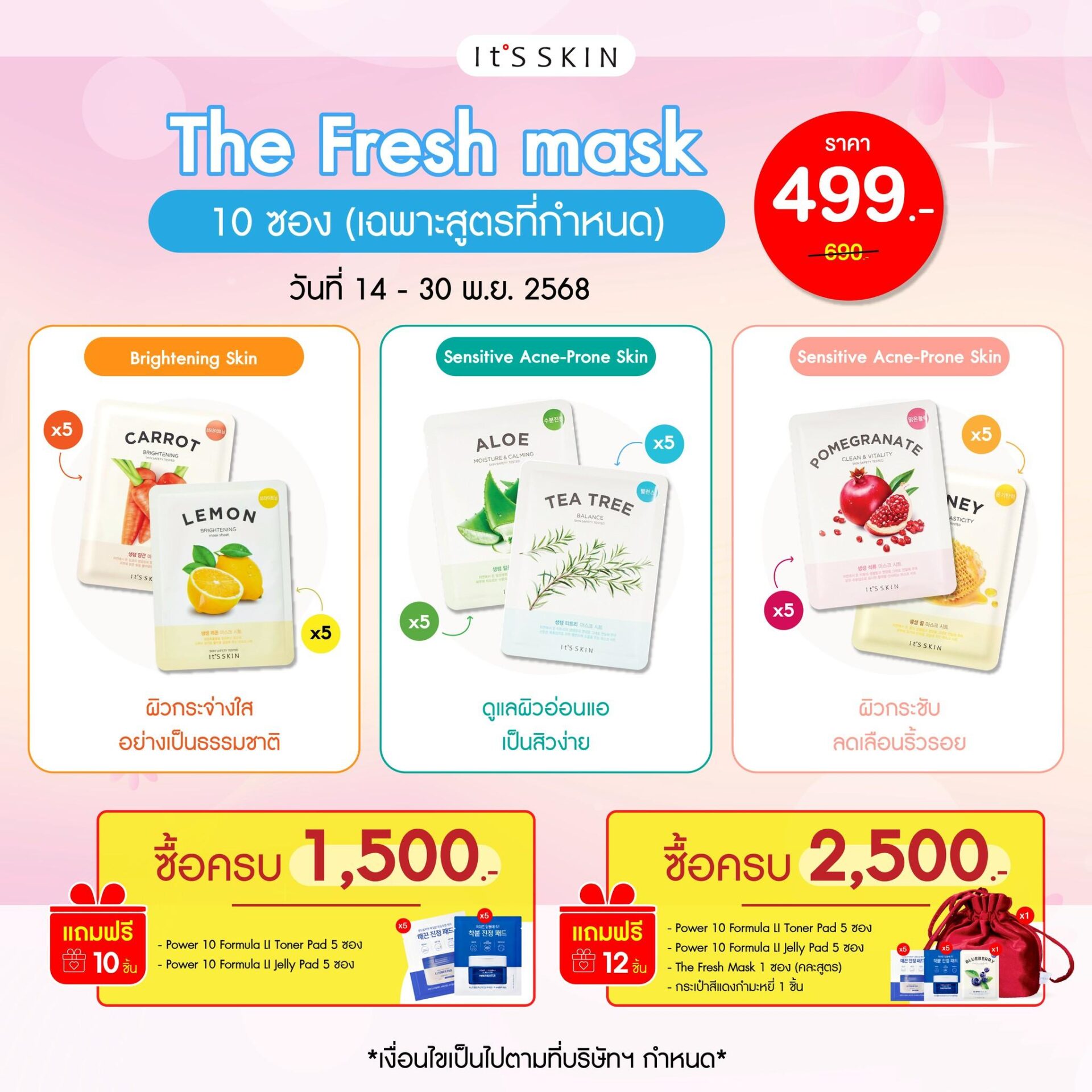 It’sskin The Fresh Mask Sheet 10 แผ่น (เฉพาะสูตรที่กำหนด) 499