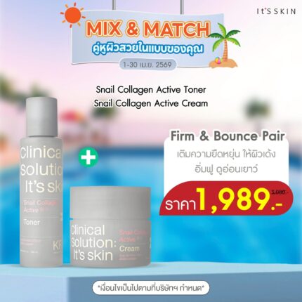 Firm & Bounce Pair : Snail Collagen Active Toner + Snail Collagen Active Cream ฿3,080.00 ฿1,989.00